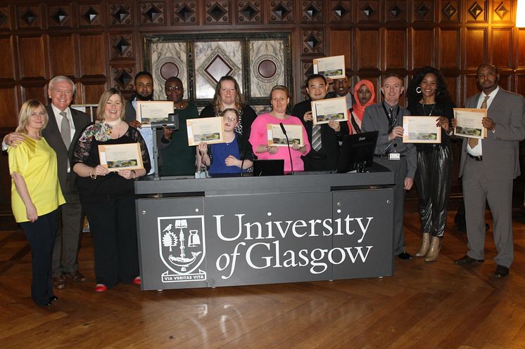 People from North Glasgow proudly show off their certificates having completed the latest Activate course with Glasgow University.
