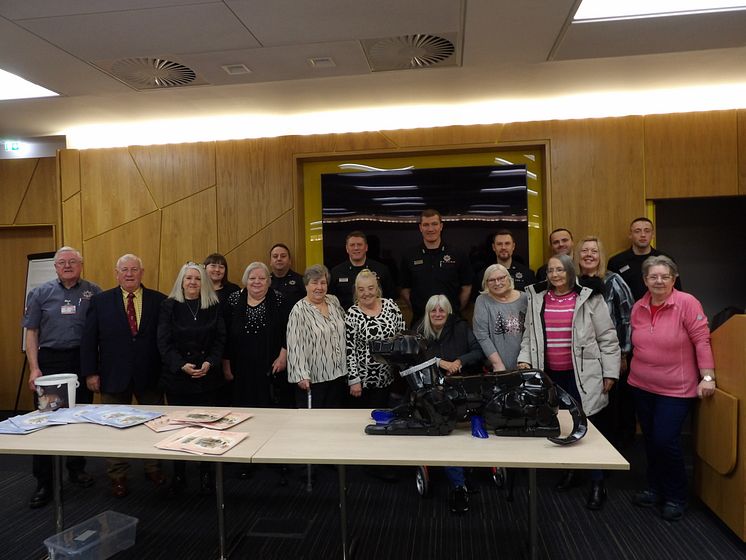 Supporters gather around the new Wallace sculpture in Saracen House, Possilpark