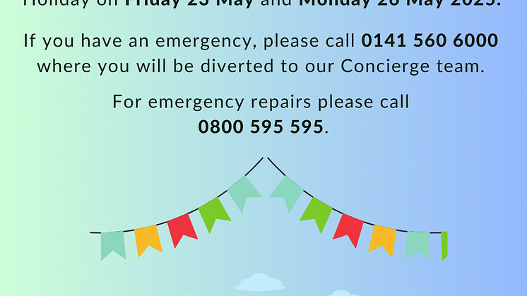 As we head towards the holiday weekend, we wanted to make sure our tenants and customers are aware of our opening hours over the upcoming bank holiday weekend and how to get in touch with us should you need to.